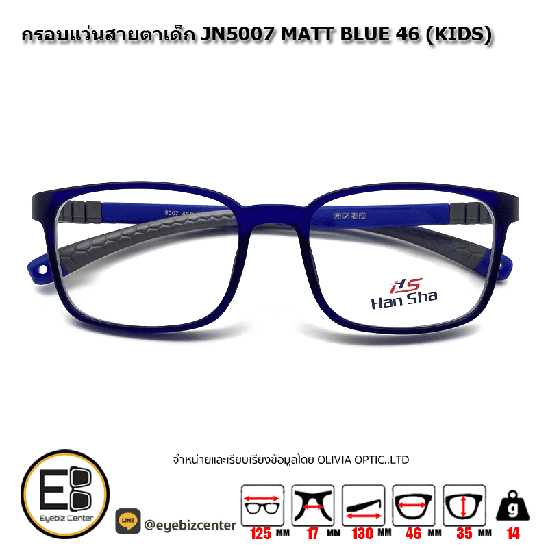 กรอบแว่นสายตา กรอบแว่นสายตาเด็ก JN5007 PINK 46(KIDS) กรอบแว่นดีไซน์ทรง ไม่ระบุ น้ำหนักเบา ใส่สบาย ตัวกรอบแว่นด้านหน้าผลิตจากวัสดุ Plastic ขาแว่นทำจาก Rubber สี Matt Blue ของแท้! มีรับประกัน ส่งเคลมได้ทุกสาขา