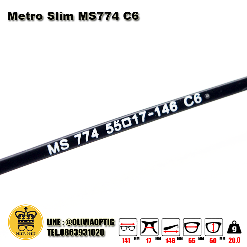 กรอบแว่นสายตา CK METRO SLIM MS774-C6 กรอบแว่นดีไซน์ทรง ไม่ระบุ แข็งแรง ทนทาน น้ำหนักเบา สวมใส่สบาย ตัวกรอบแว่นด้านหน้าผลิตจากวัสดุ Metal ขาแว่นทำจาก Metal สี BLACK ของแท้! มีรับประกัน ส่งเคลมได้ทุกสาขา