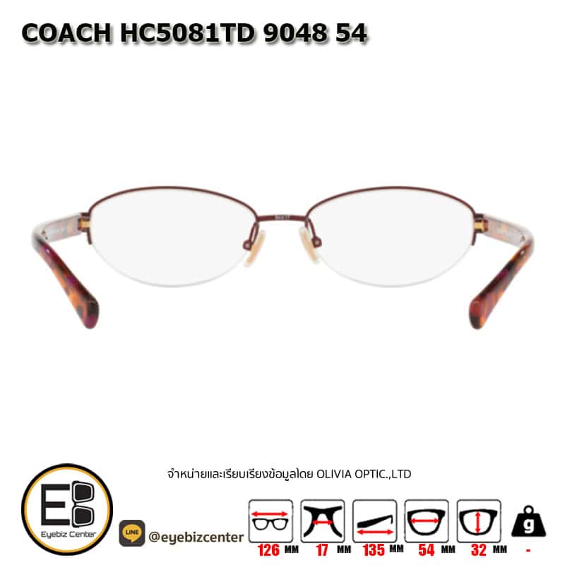 กรอบแว่นสายตา COACH HC5081TD 9048 54 กรอบแว่นดีไซน์ทรง รี น้ำหนักเบามาก ไม่เป็นสนิม แข็งแรงสูง ตัวกรอบแว่นด้านหน้าผลิตจากวัสดุ ไทเทเนียม ขาแว่นทำจาก พลาสติกอะซิเตท สี แดงเข้มเบอร์กันดี ของแท้! มีรับประกัน ส่งเคลมได้ทุกสาขา
