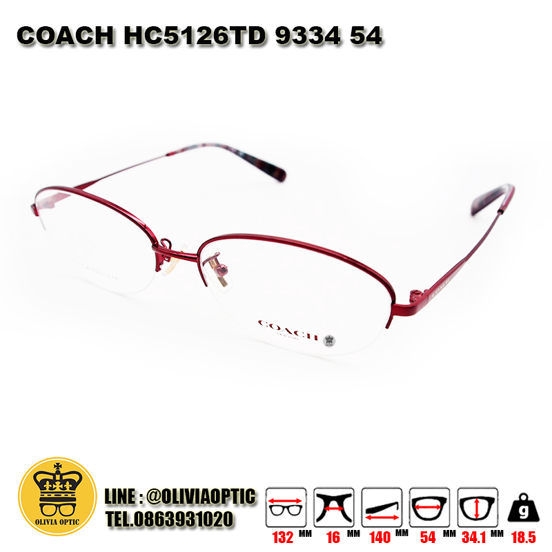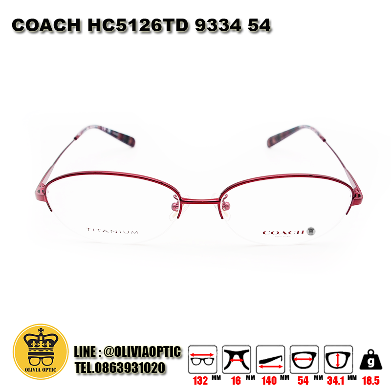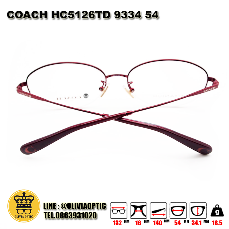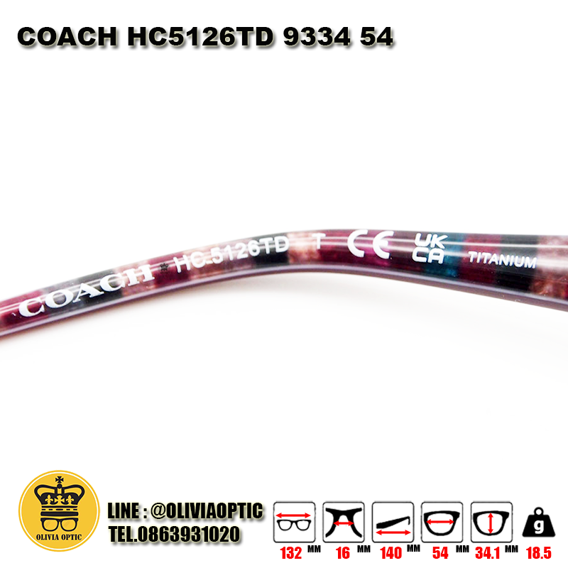 กรอบแว่นสายตา COACH HC5126TD 9334 54 กรอบแว่นดีไซน์ทรง ไม่ระบุ น้ำหนักเบามาก ไม่เป็นสนิม แข็งแรงสูง ตัวกรอบแว่นด้านหน้าผลิตจากวัสดุ TITANIUM ขาแว่นทำจาก TITANIUM สี Purple ของแท้! มีรับประกัน ส่งเคลมได้ทุกสาขา