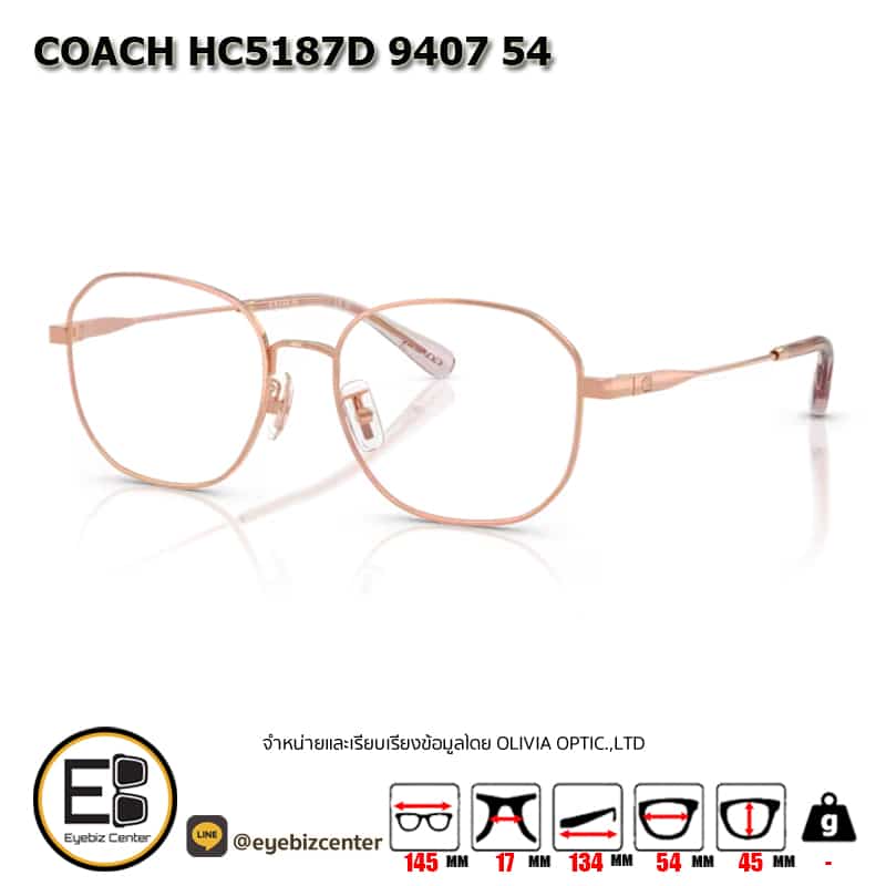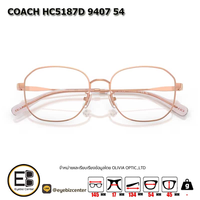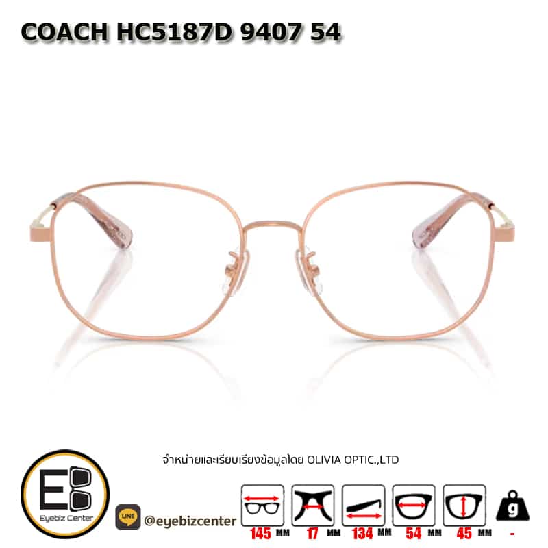 กรอบแว่นสายตา COACH HC5187D 9407 54 กรอบแว่นดีไซน์ทรง เหลี่ยมมน แข็งแรง ทนทาน น้ำหนักเบา สวมใส่สบาย ตัวกรอบแว่นด้านหน้าผลิตจากวัสดุ โลหะ ขาแว่นทำจาก โลหะ สี ชมพู rose gold ของแท้! มีรับประกัน ส่งเคลมได้ทุกสาขา