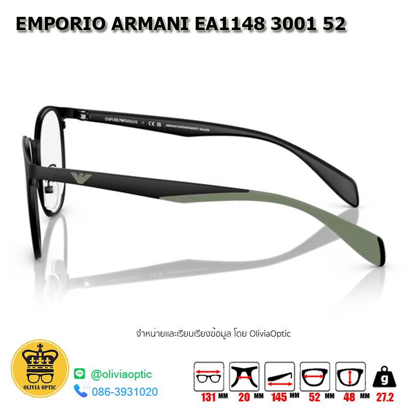 กรอบแว่นสายตา EMPORIO ARMANI EA1148 3001 52
