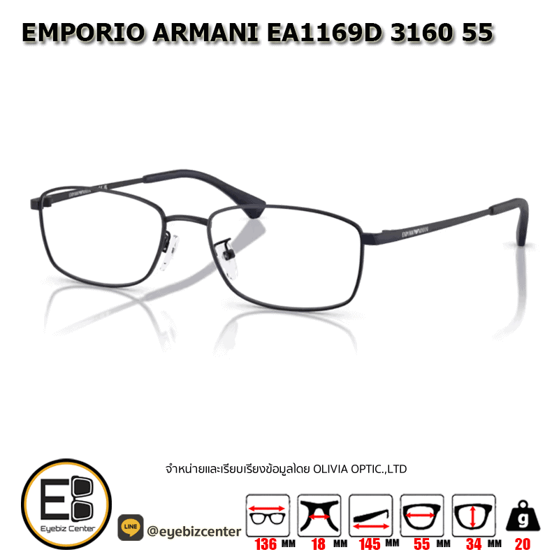 . กรอบแว่นสายตา EMPORIO ARMANI EA1169D 3160 55 [มีสินค้าที่ : สาขา พระราม5]