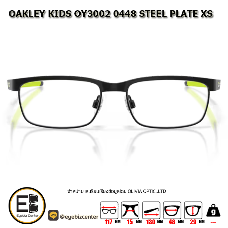 กรอบแว่นสายตา OAKLEY KIDS OY3002 0448 STEEL PLATE XS กรอบแว่นดีไซน์ทรง ไม่ระบุ ตัวกรอบแว่นด้านหน้าผลิตจากวัสดุ C_5 ขาแว่นทำจาก Metal สี Satin Black ของแท้! มีรับประกัน ส่งเคลมได้ทุกสาขา