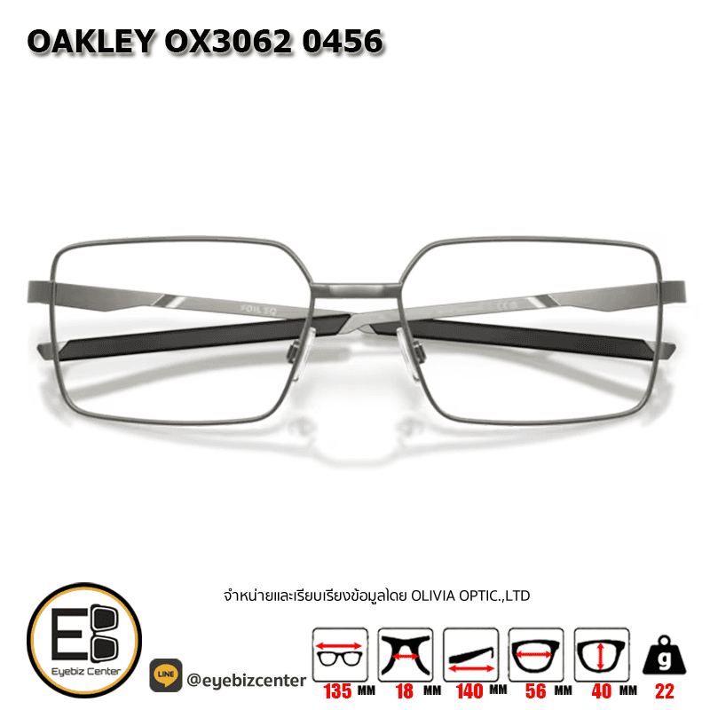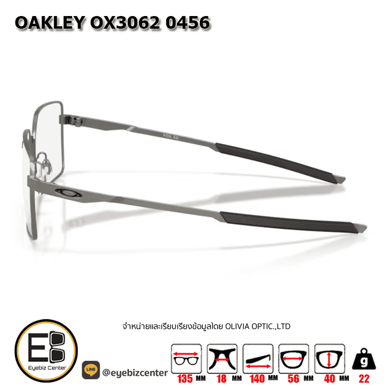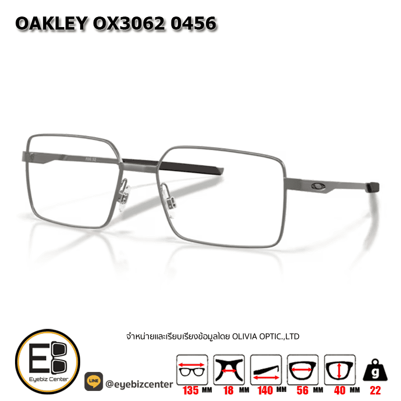 กรอบแว่นสายตา OAKLEY OX3062 0456 กรอบแว่นดีไซน์ทรง ไม่ระบุ ตัวกรอบแว่นด้านหน้าผลิตจากวัสดุ C_5 ขาแว่นทำจาก Metal สี MATTE GUNMETAL ของแท้! มีรับประกัน ส่งเคลมได้ทุกสาขา