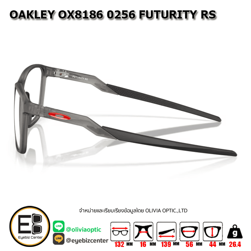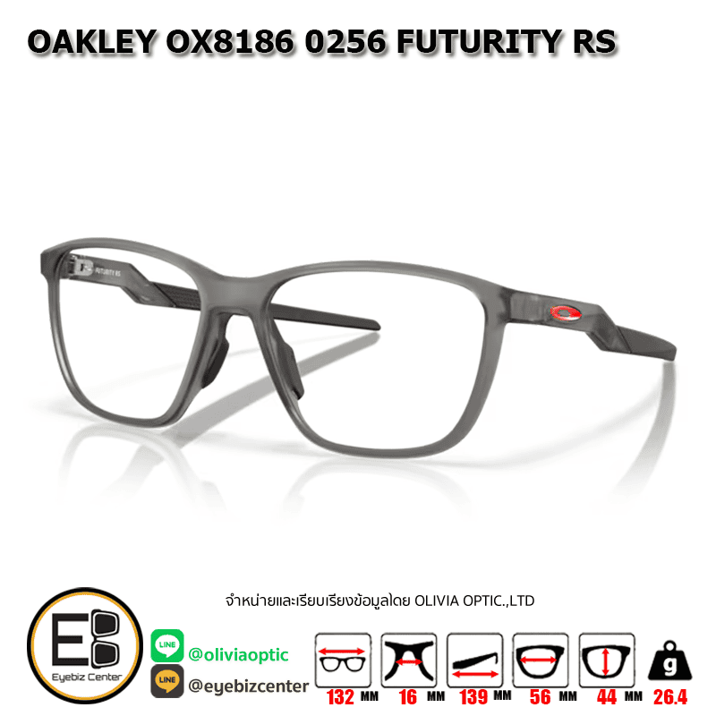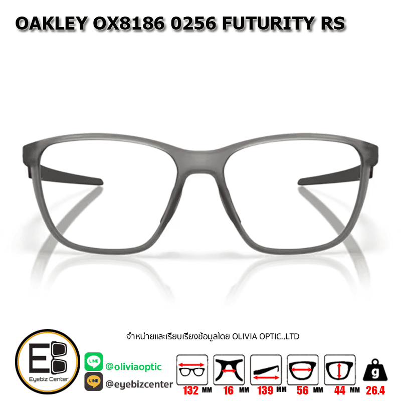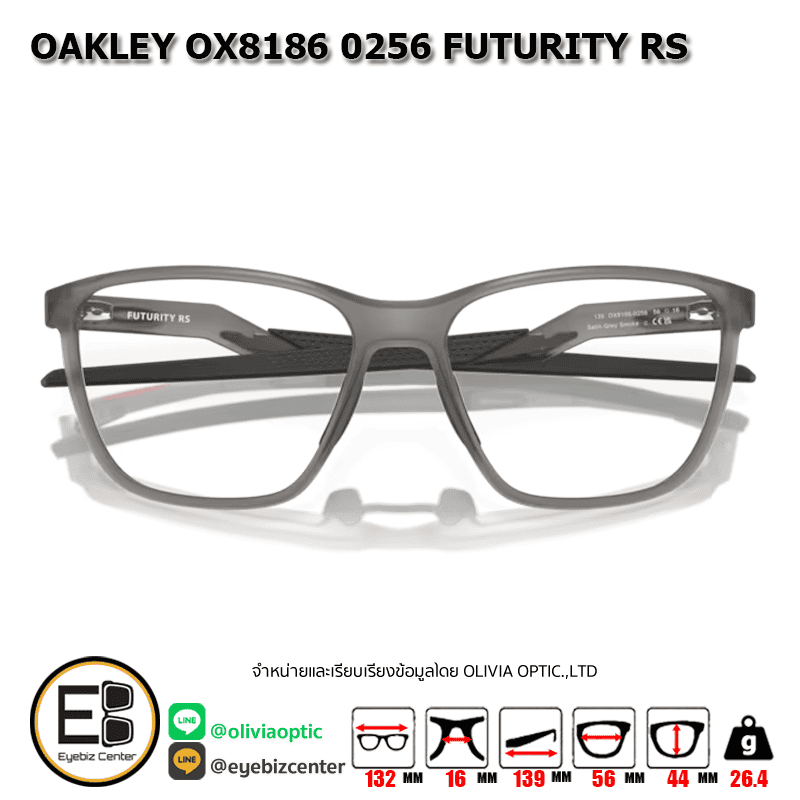 กรอบแว่นสายตา OAKLEY OX8186 0256 FUTURITY RS กรอบแว่นดีไซน์ทรง ไม่ระบุ ตัวกรอบแว่นด้านหน้าผลิตจากวัสดุ O_MATTER ขาแว่นทำจาก INJECTED สี SATIN GREY SMOKE ของแท้! มีรับประกัน ส่งเคลมได้ทุกสาขา