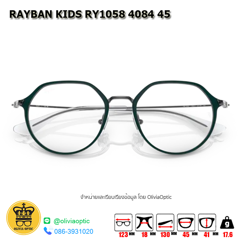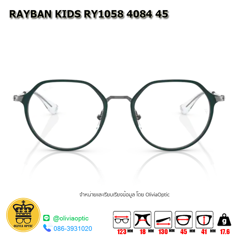 กรอบแว่นสายตา RAYBAN KIDS RY1058 4084 45 [RBที่ขาแว่น] กรอบแว่นดีไซน์ทรง ไม่ระบุ แข็งแรง ทนทาน น้ำหนักเบา สวมใส่สบาย ตัวกรอบแว่นด้านหน้าผลิตจากวัสดุ Metal ขาแว่นทำจาก Metal สี GREEN & GUNMETAL ของแท้! มีรับประกัน ส่งเคลมได้ทุกสาขา