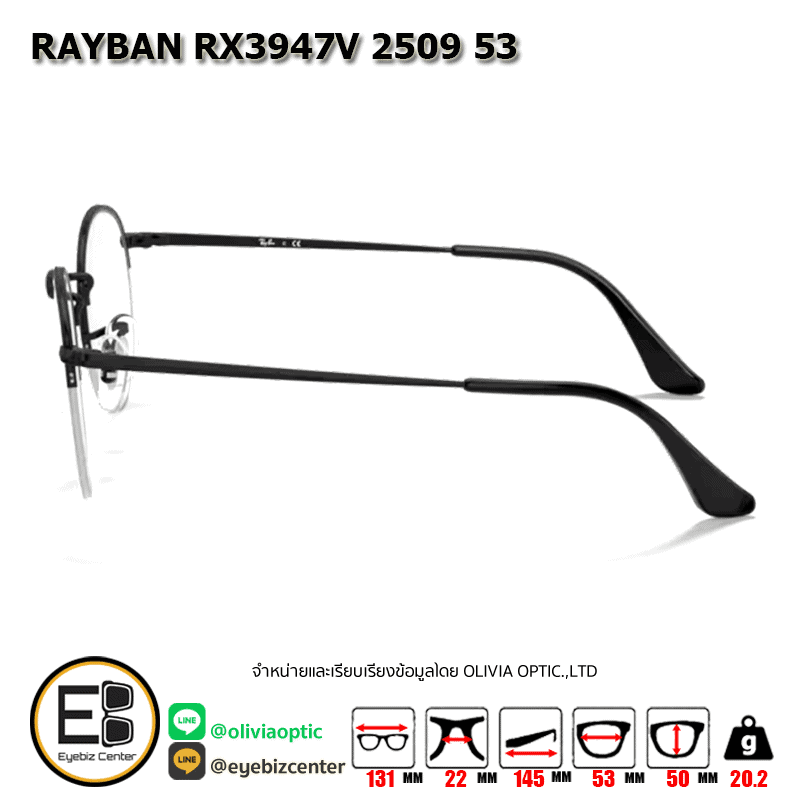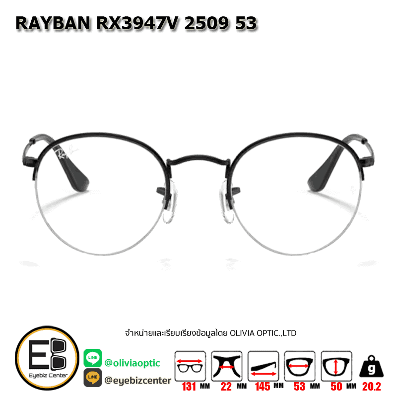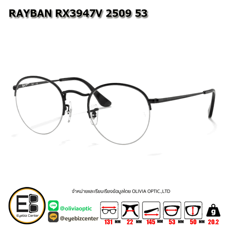 กรอบแว่นสายตา RAYBAN RX3947V 2509 53 [RBที่ขาแว่น] กรอบแว่นดีไซน์ทรง ไม่ระบุ แข็งแรง ทนทาน น้ำหนักเบา สวมใส่สบาย ตัวกรอบแว่นด้านหน้าผลิตจากวัสดุ Metal ขาแว่นทำจาก Metal สี BLACK ของแท้! มีรับประกัน ส่งเคลมได้ทุกสาขา