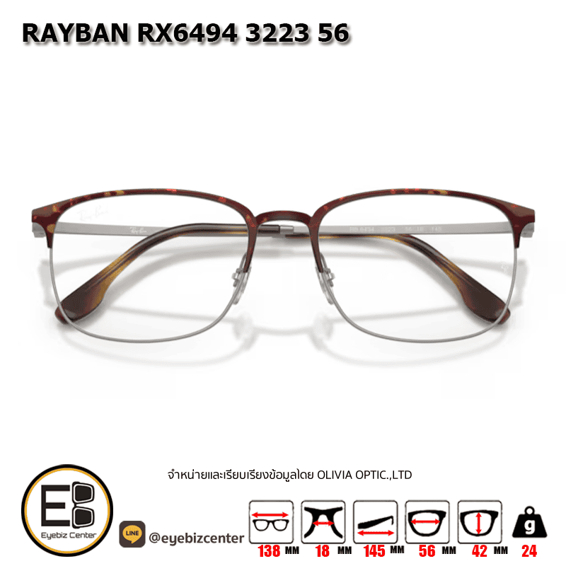 กรอบแว่นสายตา RAYBAN RX6494 3223 56 [RBที่ขาแว่น] กรอบแว่นดีไซน์ทรง ไม่ระบุ แข็งแรง ทนทาน น้ำหนักเบา สวมใส่สบาย ตัวกรอบแว่นด้านหน้าผลิตจากวัสดุ Metal ขาแว่นทำจาก Metal สี Havana On Matte Gunmetal ของแท้! มีรับประกัน ส่งเคลมได้ทุกสาขา