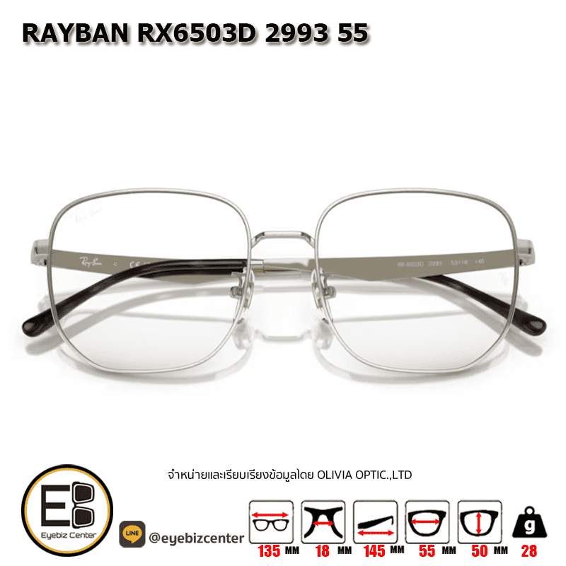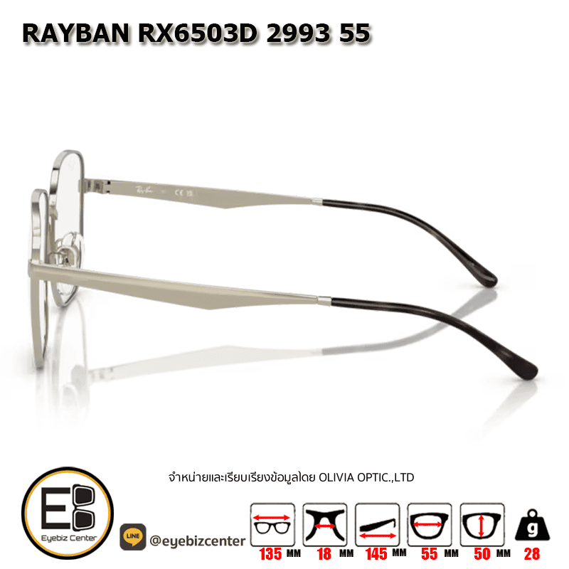 . กรอบแว่นสายตา RAYBAN RX6503D 2993 55 [RBที่ขาแว่น] [มีสินค้าที่ : สาขา ศรีนครินทร์]