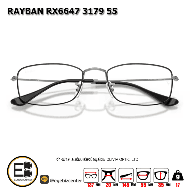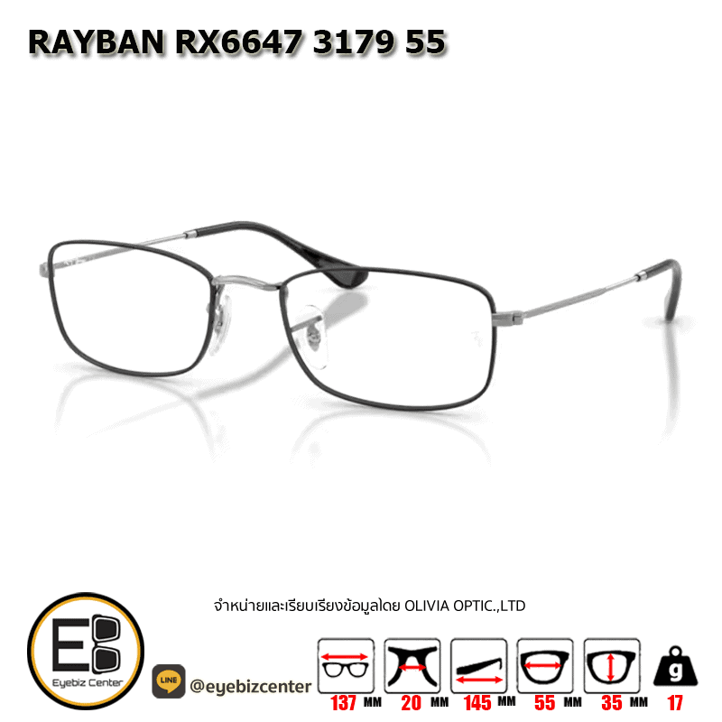 กรอบแว่นสายตา RAYBAN RX6647 3179 55 [RBที่ขาแว่น] กรอบแว่นดีไซน์ทรง ไม่ระบุ แข็งแรง ทนทาน น้ำหนักเบา สวมใส่สบาย ตัวกรอบแว่นด้านหน้าผลิตจากวัสดุ Metal ขาแว่นทำจาก Metal สี Black On Gunmetal ของแท้! มีรับประกัน ส่งเคลมได้ทุกสาขา