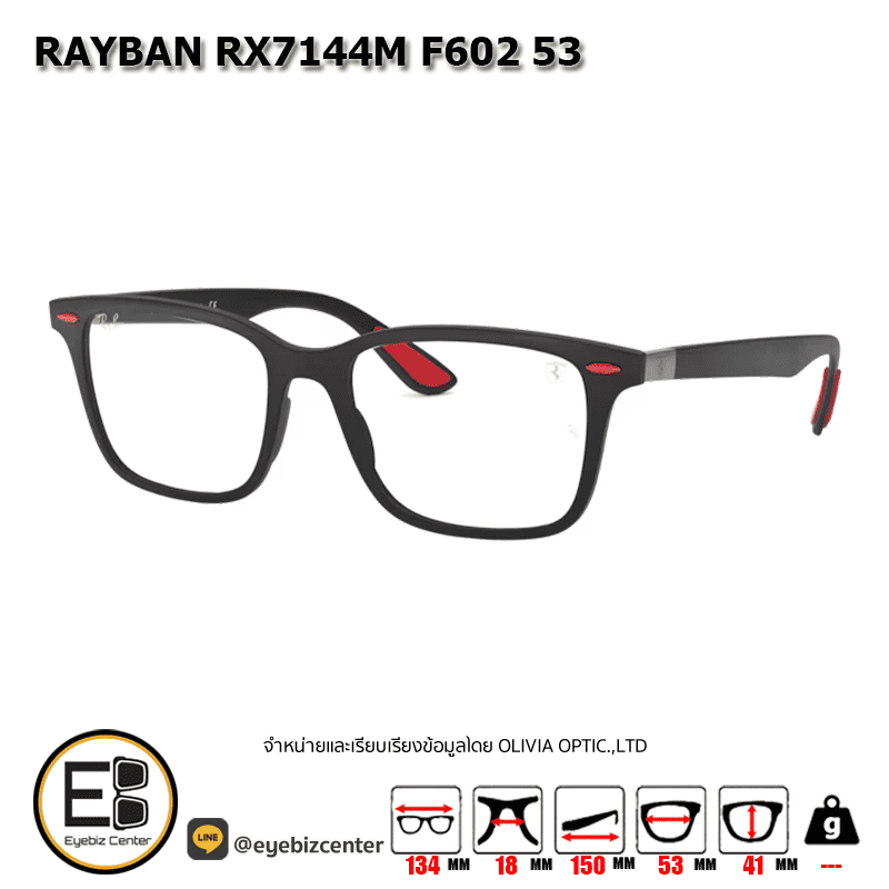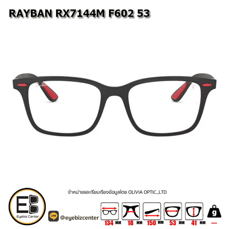 กรอบแว่นสายตา RAYBAN RX7144M F602 53 [RBที่ขาแว่น] กรอบแว่นดีไซน์ทรง ไม่ระบุ ตัวกรอบแว่นด้านหน้าผลิตจากวัสดุ PEEK ขาแว่นทำจาก Metal สี BLACK ของแท้! มีรับประกัน ส่งเคลมได้ทุกสาขา