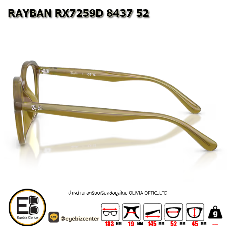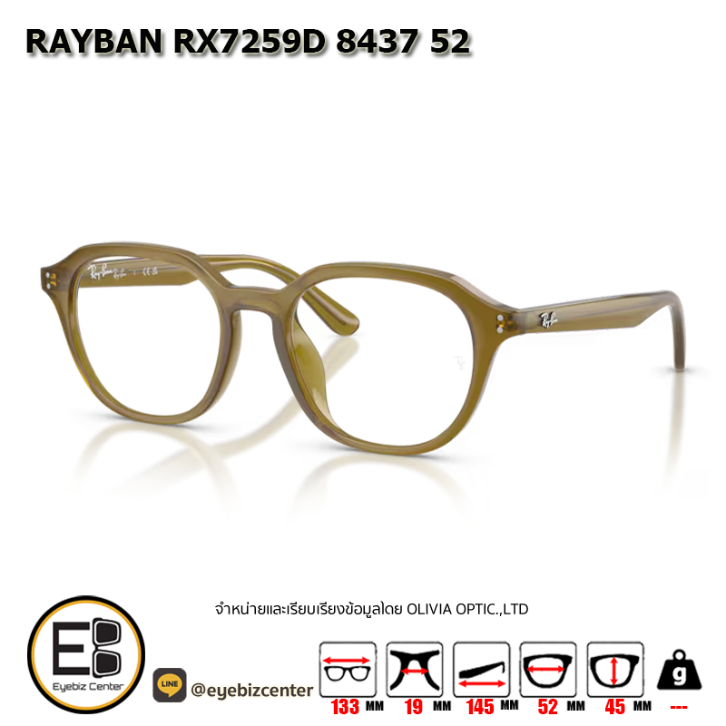 กรอบแว่นสายตา RAYBAN RX7259D 8437 52 [RBที่ขาแว่น] กรอบแว่นดีไซน์ทรง ไม่ระบุ ตัวกรอบแว่นด้านหน้าผลิตจากวัสดุ PROPIONATE ขาแว่นทำจาก PROPIONATE สี TRANSPARENT OLIVE GREEN ของแท้! มีรับประกัน ส่งเคลมได้ทุกสาขา