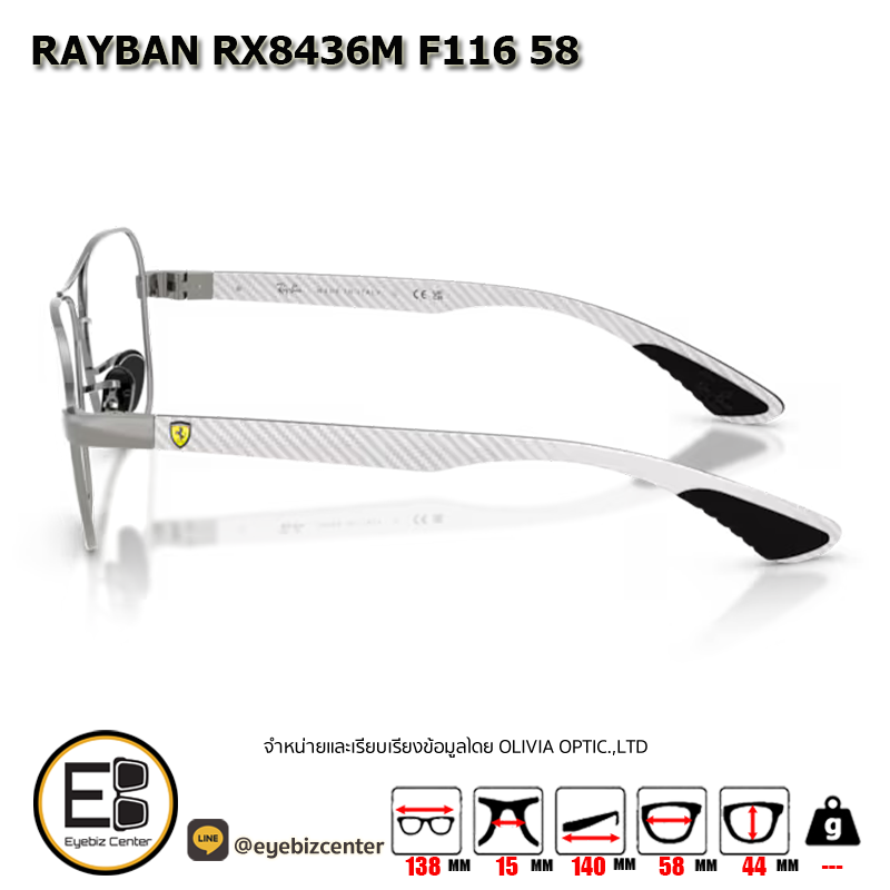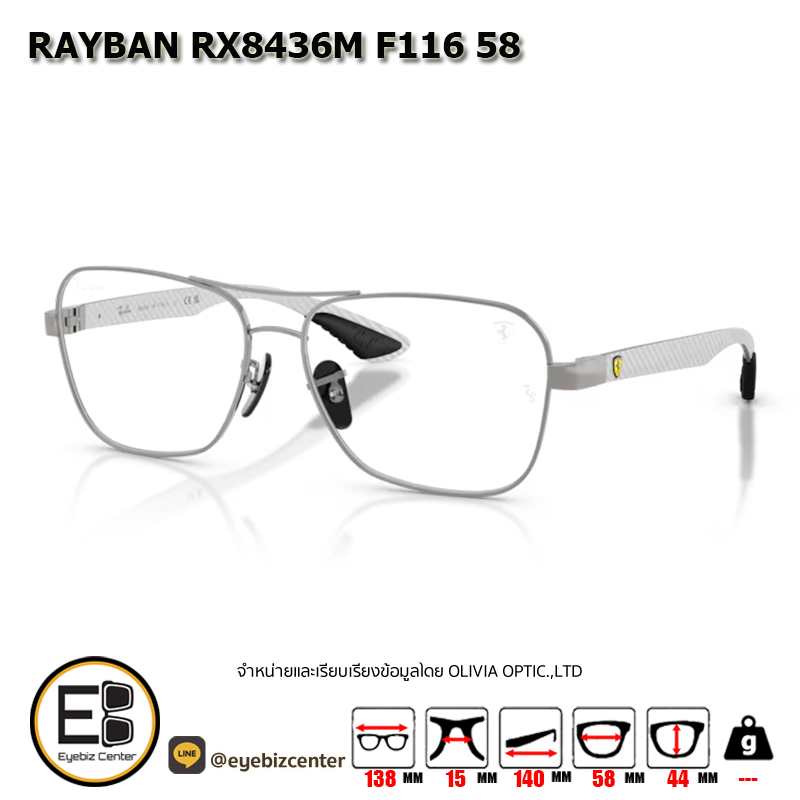 กรอบแว่นสายตา RAYBAN RX8436M F116 58 [RBที่ขาแว่น] กรอบแว่นดีไซน์ทรง ไม่ระบุ แข็งแรง ทนทาน น้ำหนักเบา สวมใส่สบาย ตัวกรอบแว่นด้านหน้าผลิตจากวัสดุ Metal ขาแว่นทำจาก Metal สี GUNMETAL & LIGHT CARBON ของแท้! มีรับประกัน ส่งเคลมได้ทุกสาขา