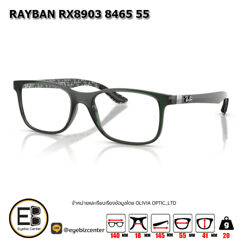 กรอบแว่นสายตา RAYBAN RX8903 8465 55 [RBที่ขาแว่น] กรอบแว่นดีไซน์ทรง ไม่ระบุ ตัวกรอบแว่นด้านหน้าผลิตจากวัสดุ INJECTED ขาแว่นทำจาก CARBON FIBER สี Transparent Green & Dark Carbon On Texture Whi ของแท้! มีรับประกัน ส่งเคลมได้ทุกสาขา