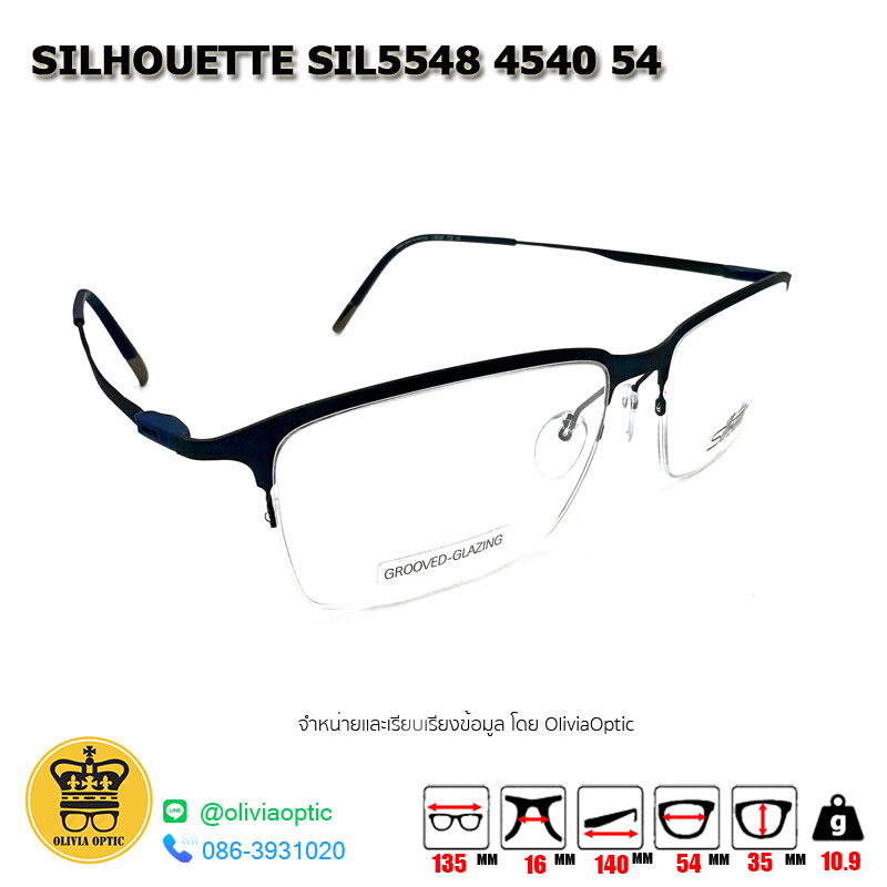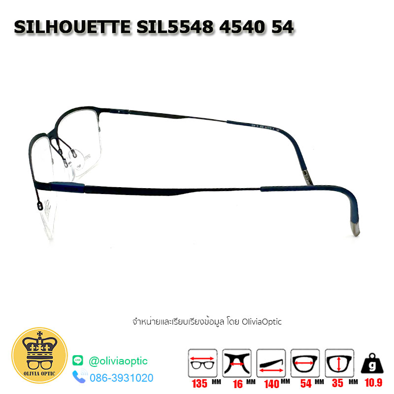 กรอบแว่นสายตา SILHOUETTE SIL-5548-4540 กรอบแว่นดีไซน์ทรง ไม่ระบุ น้ำหนักเบามาก ไม่เป็นสนิม แข็งแรงสูง ตัวกรอบแว่นด้านหน้าผลิตจากวัสดุ TITANIUM ขาแว่นทำจาก TITANIUM สี BLUE ของแท้! มีรับประกัน ส่งเคลมได้ทุกสาขา